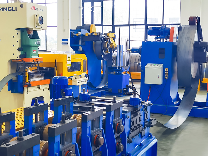 تشكيل اللفة: يمر الشريط عبر مجموعات متعددة من بكرات التشكيل (عادةً أكثر من عشرة إلى عشرين تمريرة). تطبق كل تمريرة لفة قوة ثني دقيقة على الشريط، وتحول شكله تدريجيًا من لوح مسطح إلى مقطعه العرضي النهائي على شكل حرف C.